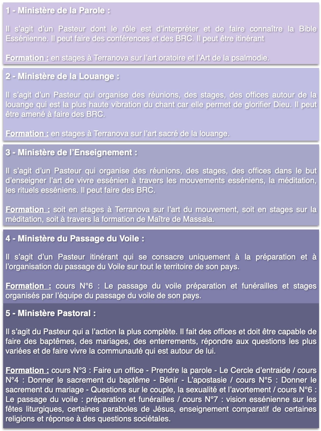 Pour être candidat à la formation de Pasteur Essénien il y a quatre pré-requits :